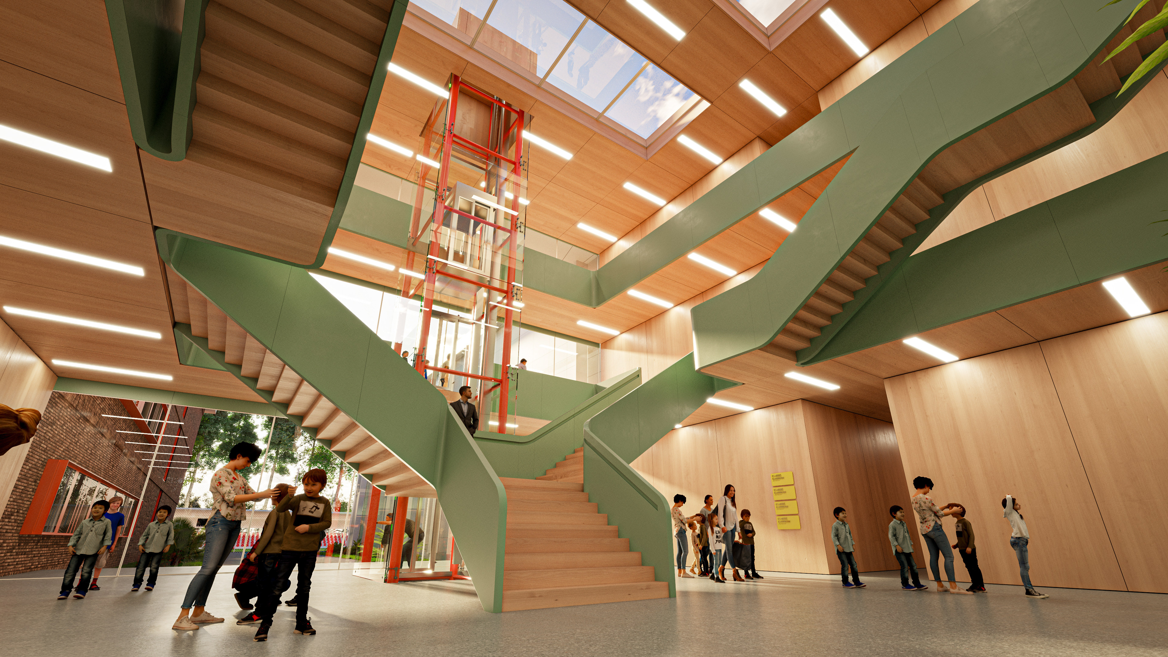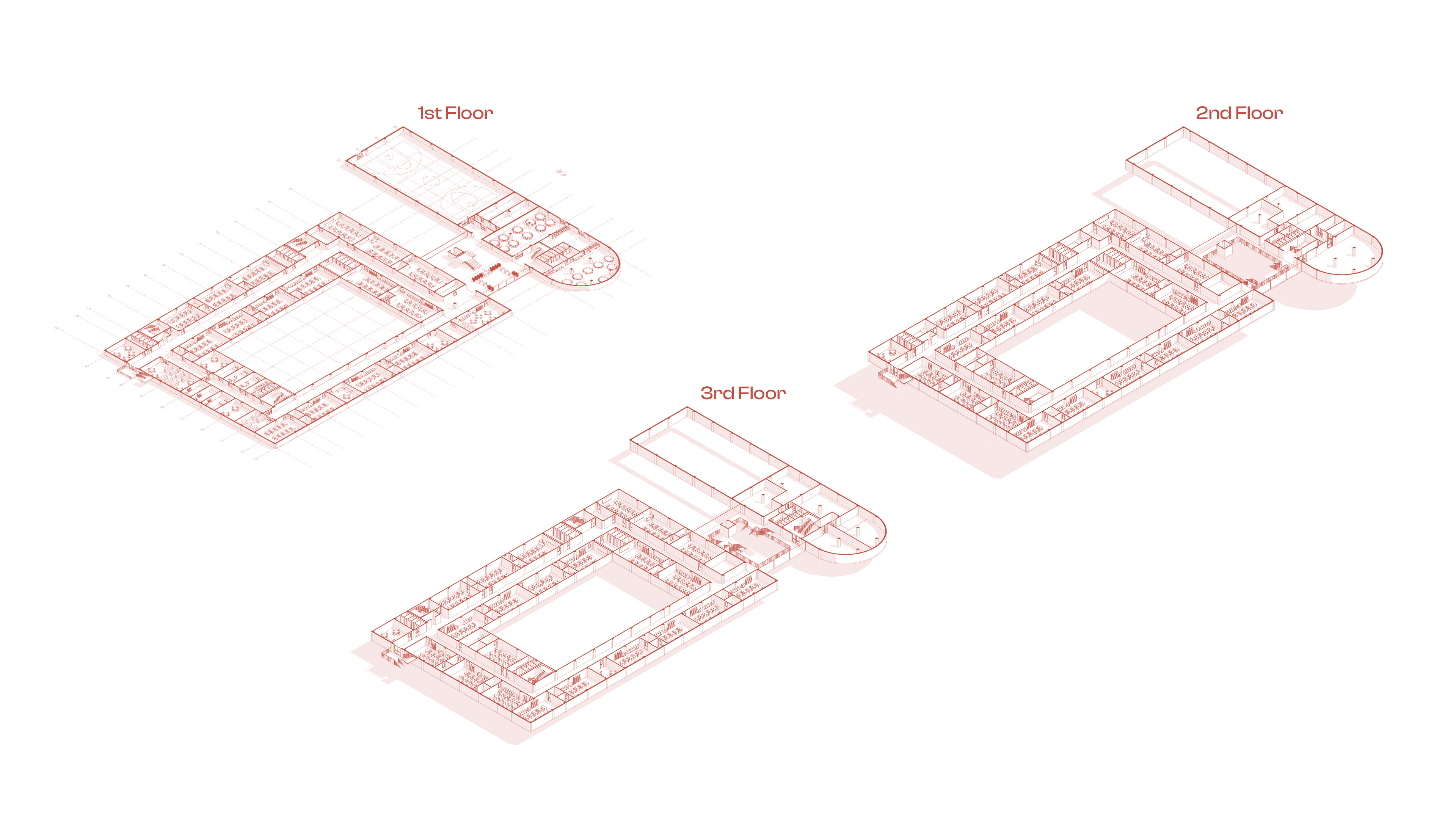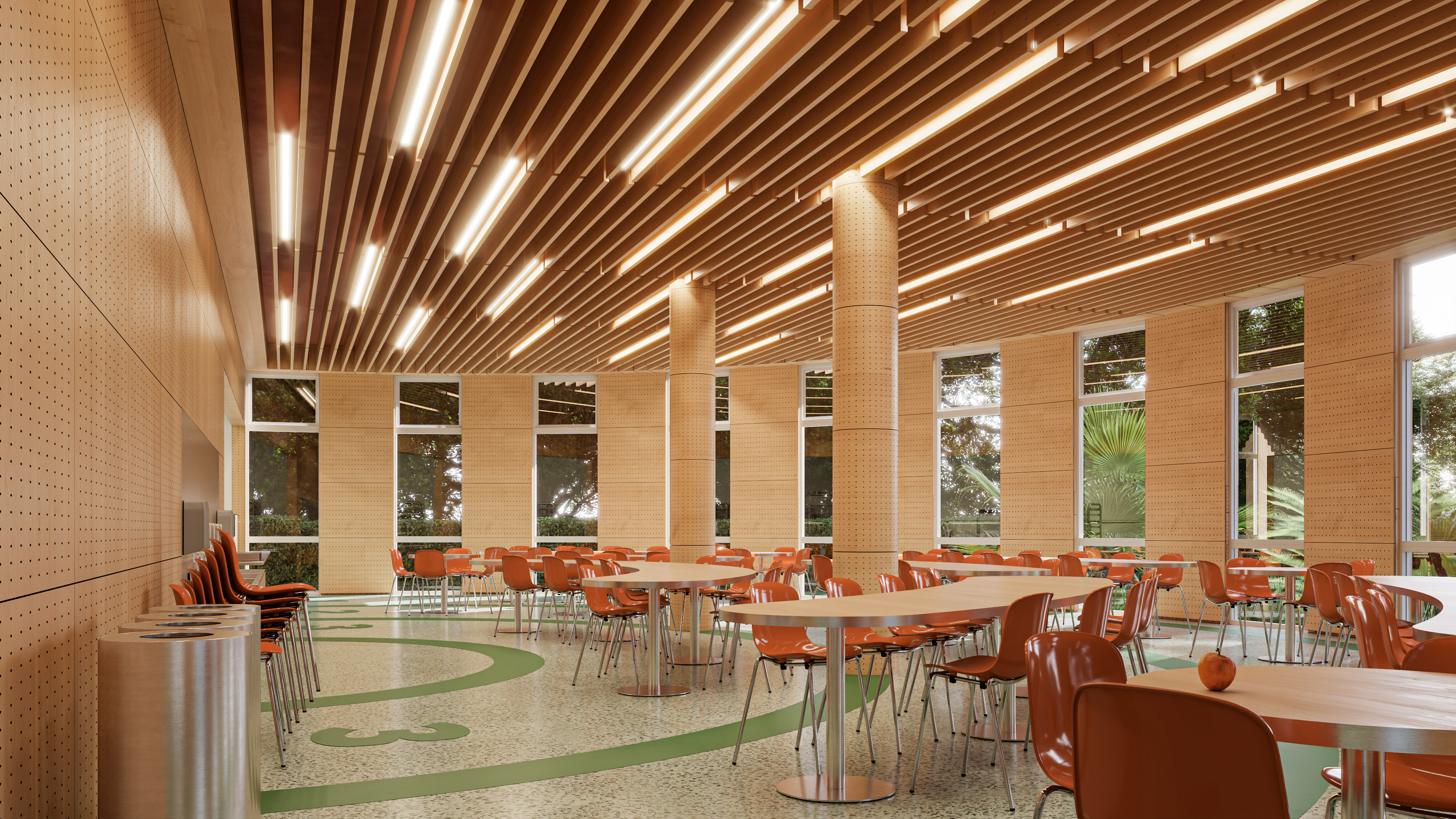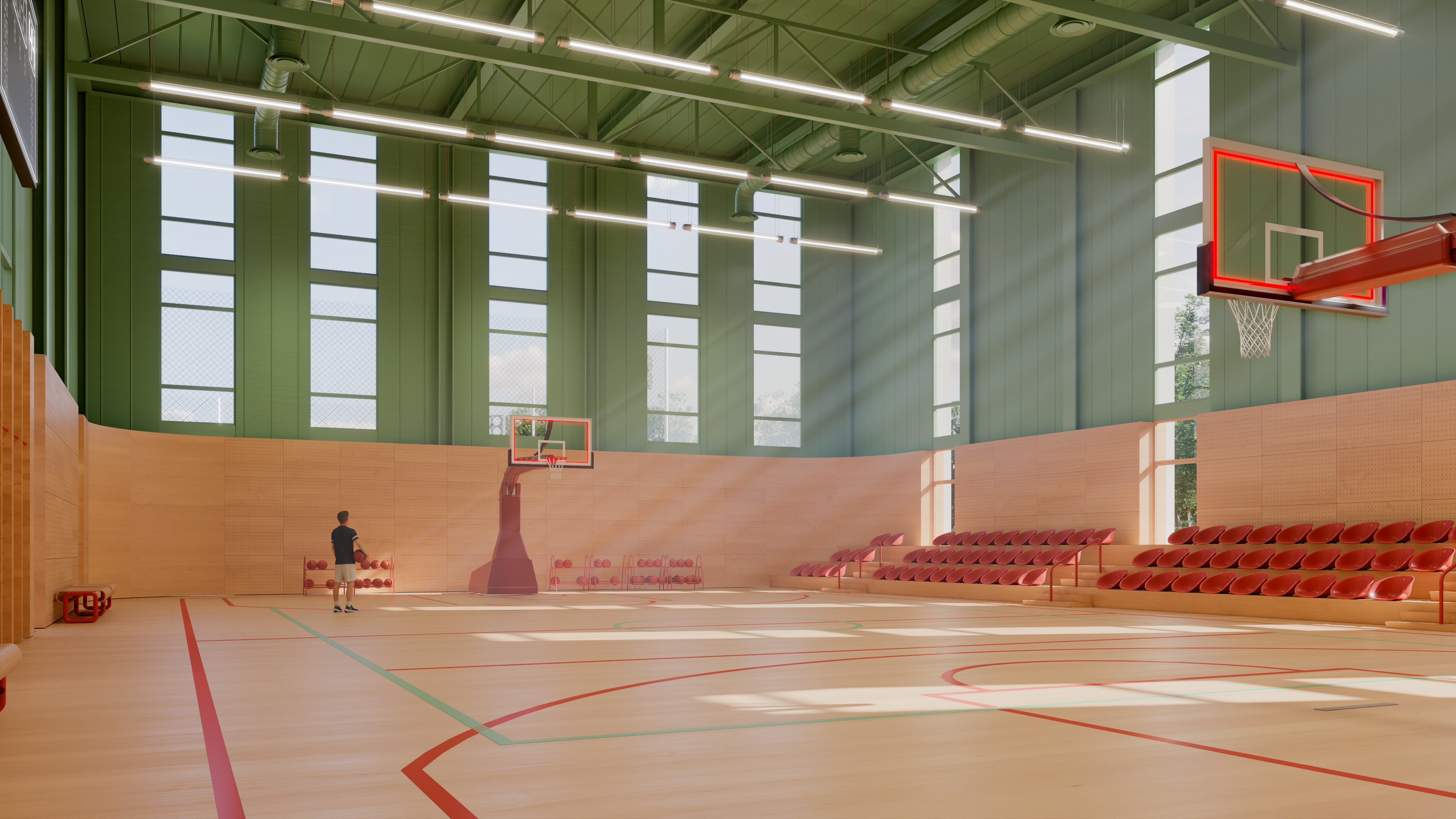 The Public School project in Chakvi, Adjara, is a modern educational facility designed to replace an aging building with an inspiring and durable learning environment. The architectural concept creates a symbolic bridge between the past and the future by combining a classic natural brick academic block with a contemporary white entry wing. This design focuses on simple, effective solutions that foster healthy social interaction among students and teachers while ensuring the building remains a beautiful urban landmark for decades to come. The spacious interior is filled with natural light and includes specialized areas such as science laboratories, a dedicated information technology center, and a large sports hall. Outside, the project features extensive greenery and sports courts designed to provide natural shade and create a welcoming communal space for daily student activities